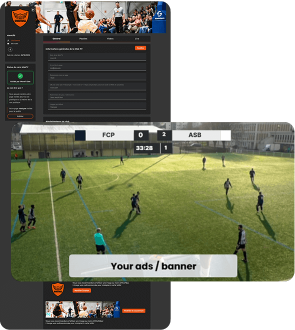 Generate income by charging the views for your live streaming, and / or by charging video downloads (pay-per-view system). You set your selling prices, and you receive 70 or 75% of them (25 or 30% go to the platform) in function of the selected plan. Parents will be so pleased when they can download their children's games, your team and the opposing team, and calculate your gains over the weekends!